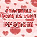 Nous avons choisi de classer le logo prénom pour portable à télécharger Coeurs et texte "Ensemble pour la vie!" dans le genre "